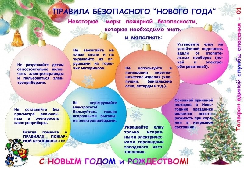 Во время новогодних праздников, помимо обычных правил пожарной безопасности, следует соблюдать ещё несколько простых норм, которые позволят вам получить от праздничных дней только положительные эмоции: