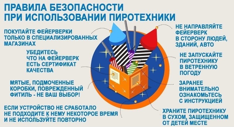 Чтобы не допустить печального исхода праздника, стоит знать основные правила безопасности при использовании пиротехники: